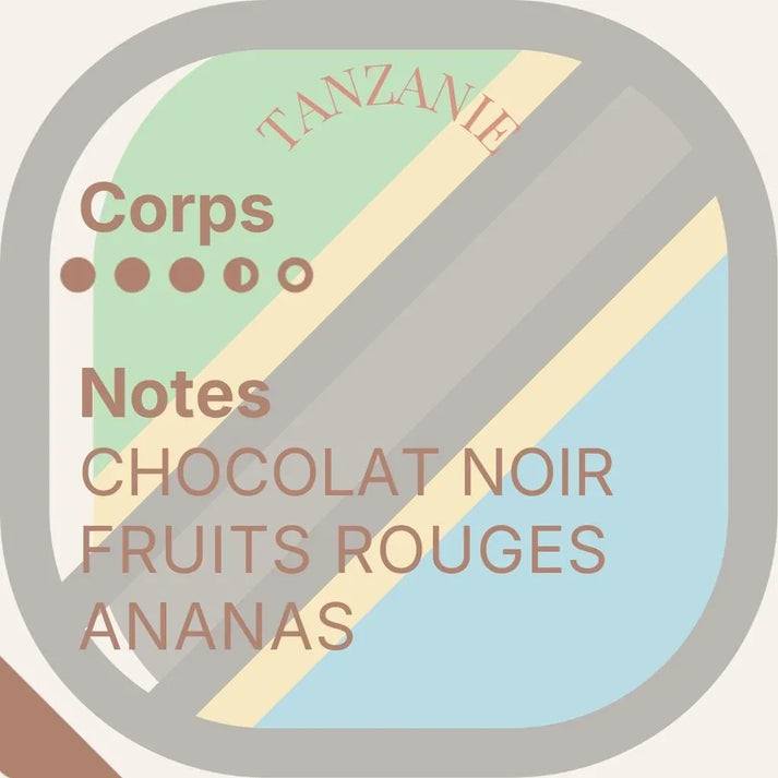 IntensitĂ© : 3,5 / 5Ce cafĂ© tanzanien repose sur la mĂȘme trame aromatique que les grains d'IndonĂ©sie, chocolat noir, fruits rouges et ananas, mais sâexprime avec un corps plus lĂ©ger et plus vif. Son profil est marquĂ© par une aciditĂ© rafraĂźchissante et une tasse plus aĂ©rienne, oĂč les fruits rouges et la framboise sont mis en avant, adoucis par une fraĂźcheur dâananas.