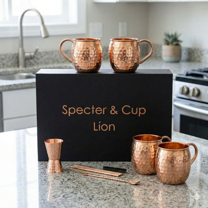 DÚs la prise en main, le poids rassurant du cuivre massif et le grain unique du martelage manuel confirment l'exigence de cet ouvrage d'une qualité rare. L'éclat ambré de ces mugs capte la lumiÚre pour créer une atmosphÚre chaleureuse et raffinée. Grùce à la conductivité thermique exceptionnelle du cuivre pur, la fraßcheur du cocktail est immédiatement communiquée aux lÚvres, offrant une sensation saisissante que seul ce métal noble peut procurer. Un choix juste et mémorable pour celui qui préfÚre les objets chargés d'histoire.